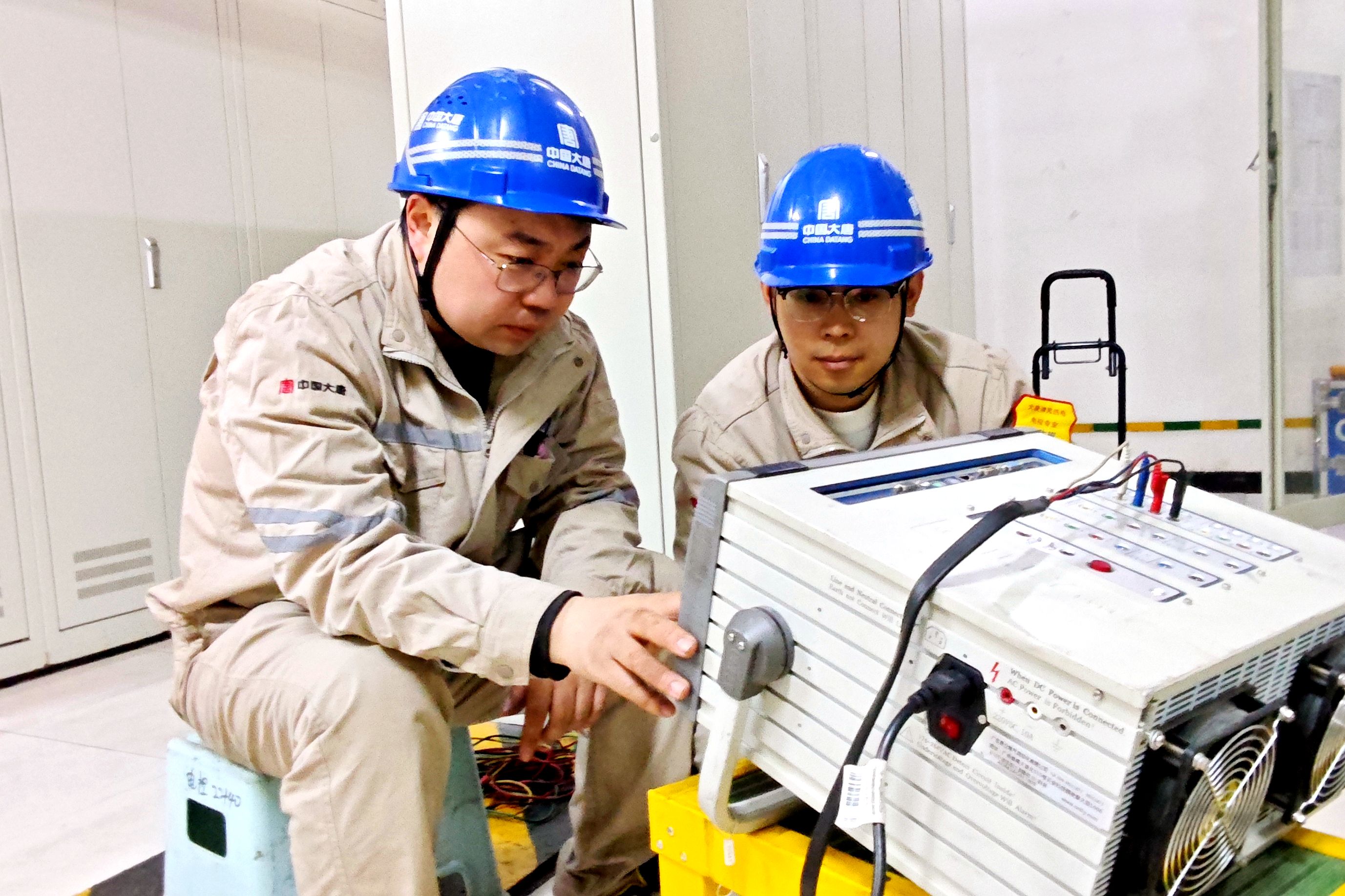 在发变组保护校验的现场,随着一声清晰的指令,电控班长刘晓明侧身看向身旁的新职工梁宁,眼神里满是笃定。这对师徒搭子并肩站在继电保护屏前,即将开始一场“精密手术”。