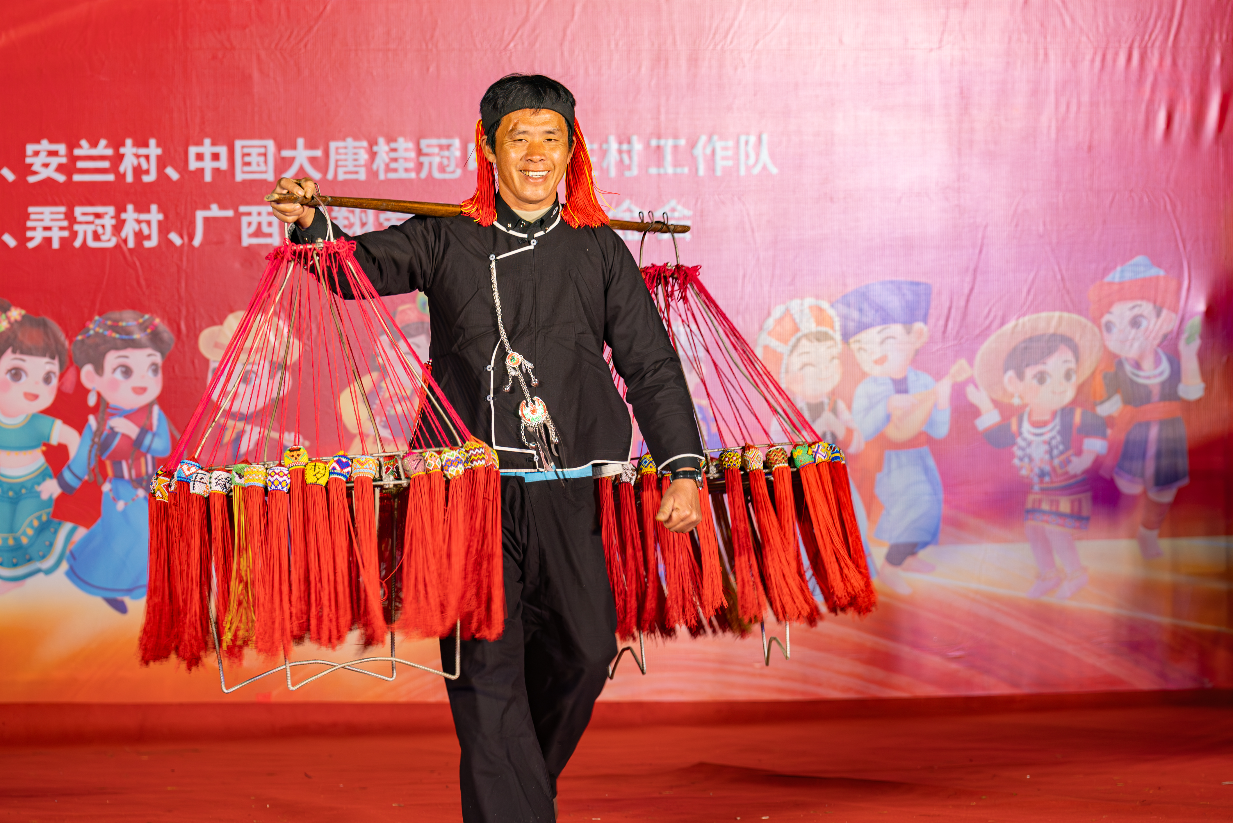 晚会高潮由板兰村弄英屯的康凡老师与其他学生带来。这位曾获得梦想剧场冠军、现任巴马县第五小学的音乐老师,用瑶话和普通话交织演绎《飞歌迎宾》《家乡》《我要抱着你》等歌曲,那悠扬深沉的歌声如山间百灵般,载着游子对故土的眷恋,温暖了每一个人的心灵。